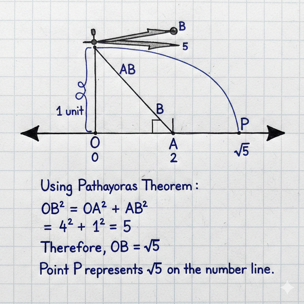 Show how √5 can be represented on the number line.